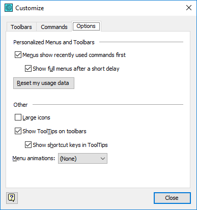 If you do not want the menus behave in such a way, just clear the Menus show recently used command first check box. In this case, TestComplete will show all the menu items when you open a menu.