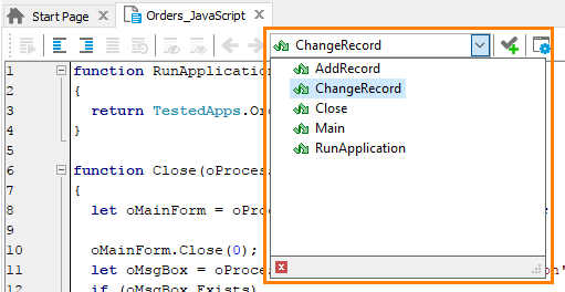 TestComplete automatically will position the cursor at the first line of this routine in the Code Editor.