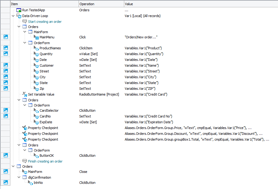 Click Finish to close the dialog. TestComplete will append the operation to the test.