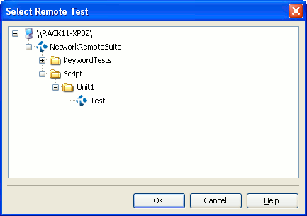 Use the Select Remote Test dialog to specify the test of the project, that is currently selected in the Tasks editor's Project file name column for the task. This dialog appears when you click the ellipsis button in the Test column of the Tasks editor.