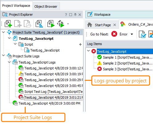 In addition, you can create custom subfolders in the Project Suite Logs folder to group test logs according to your needs (see Organizing Items Into Folders).