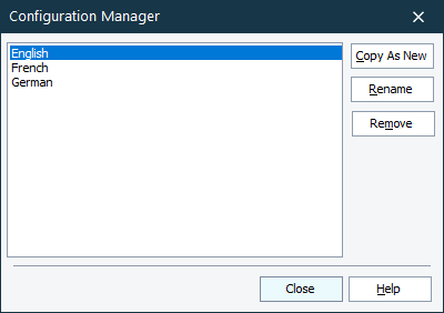 Select the needed configuration in the Configuration Manager dialog and click Close.