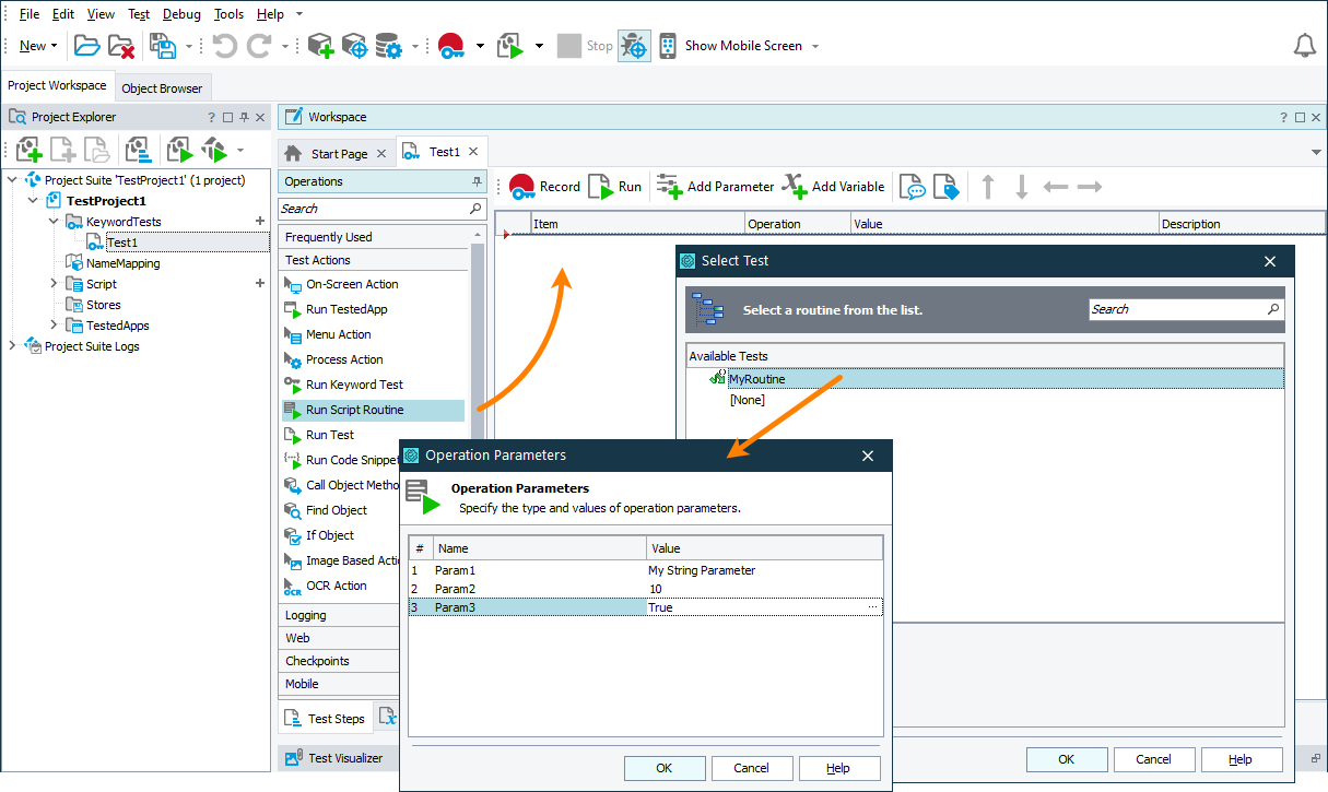 3. Select your parameterized routine in the operation’s Select Test dialog.