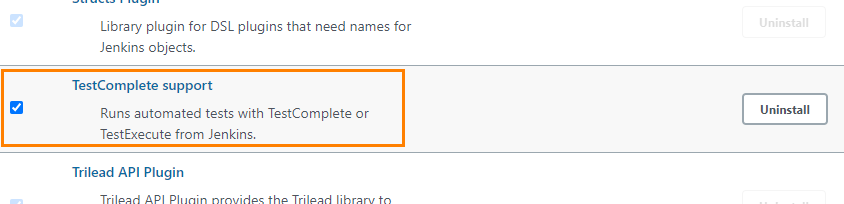 To use Jenkins to run TestComplete tests, install the TestComplete Support plugin and configure Jenkins nodes.