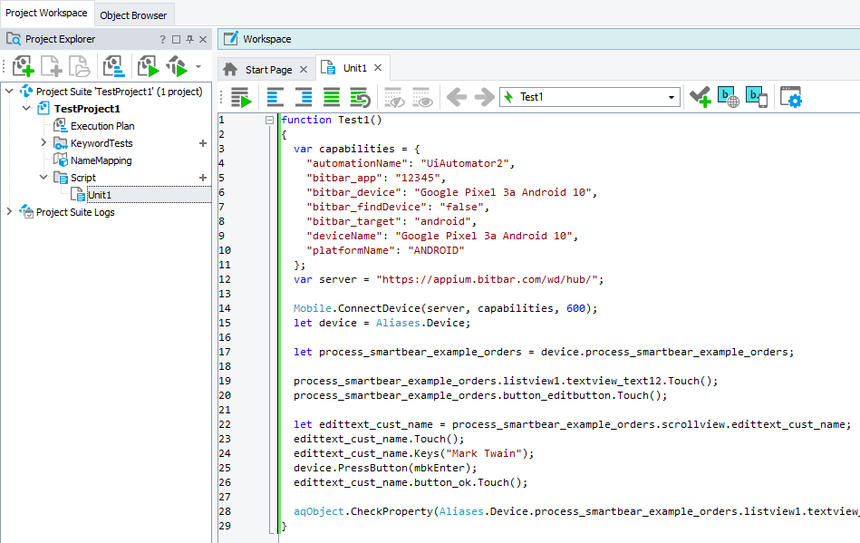 In TestComplete, you create automated tests for mobile applications running on devices managed by the BitBar mobile device cloud or by a private Appium server. The easiest way to create a test is to record it. You can also write script tests and create keyword tests manually from scratch or modify recorded tests.