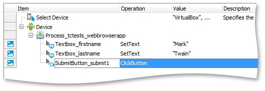 During test recording, TestComplete captures images of the device screen and displays them in the Test Visualizer panel. These images help you understand what operations your test performs.