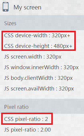 Device pixel ratio and CSS screen size