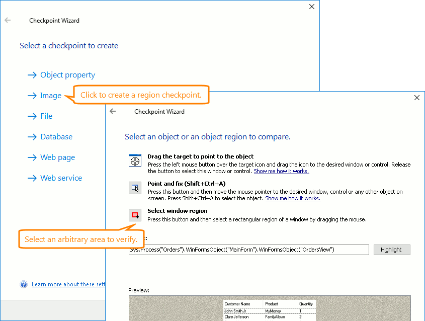 Like it was in earlier TestComplete versions, in version 12.31, you can create region checkpoints for arbitrary regions of the screen.