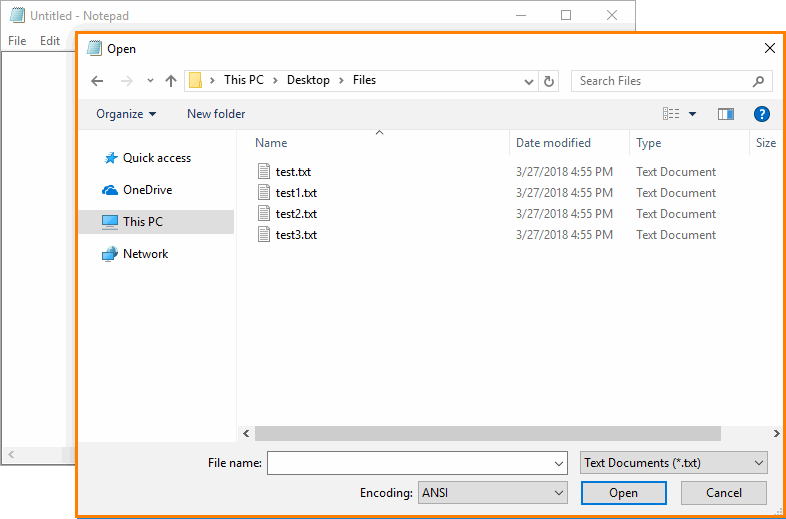 notepad.Window("#32770", "Open").OpenFile("C:\\MyFile.txt");
