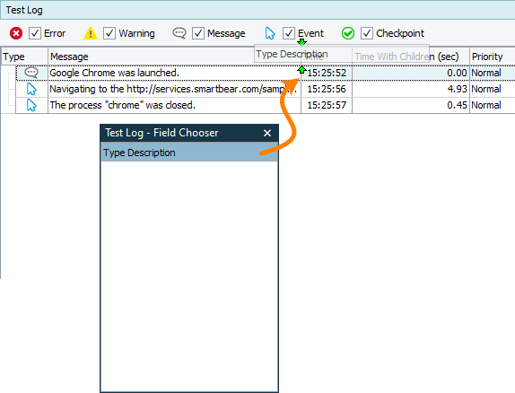 In TestComplete, to add or remove a column, right-click the column header and then click
