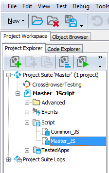 The Workspace panel displays editor and log pages. Each window that is displayed in the Workspace act as a panel. You can undock and re-dock these windows within the Workspace panel in the same manner in which you dock other panels within the TestComplete window.