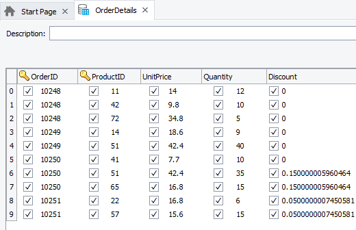 • Since key fields are used to identify database records, the database provider, which is used to access data, should support the sorting of records in these fields. In other words, if you mark a field as a key, the provider should be able to sort data in this field. The sorting is typically supported for ordinary data types: string, integer, float, date, time and boolean. Some database engines may also support sorting on fields of other types. However, the list of supported fields differ from one provider to another. To prevent problems, it is recommended to select the Key check box for the fields of ordinary types and avoid selecting the check box for non-ordinary fields such as hyperlink or memo.