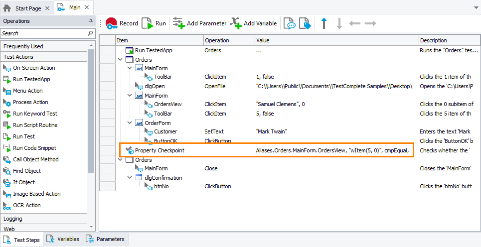 By default, Quick Checkpoints are enabled in TestComplete. If you do not need them for some reason, you can disable them at any time. It is quite possible that you may want to disable them temporarily during the test recording and enable a few moments later.