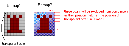 The comparison engine has a number of parameters. Each of the parameters enables additional processing of bitmaps, which makes comparison more flexible.
