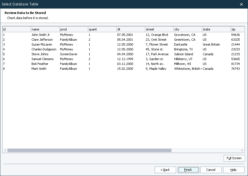 The last page of the wizard displays the data, which TestComplete retrieved from the database according to the criteria specified on the previous pages: