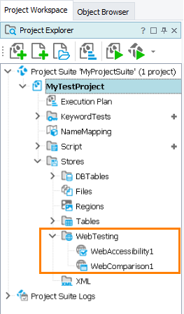 The WebTesting collection of the Stores project item contains elements that are used to perform verification and comparison operations over web pages that are typically executed when performing functional testing of web pages.