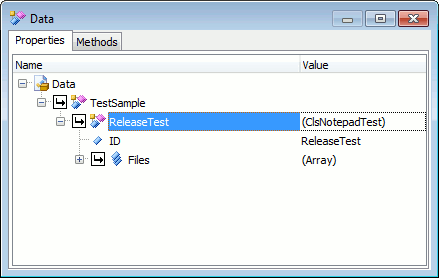 6. The properties of the ClsNotepadTest class will appear as child nodes of the ReleaseTest object’s node: