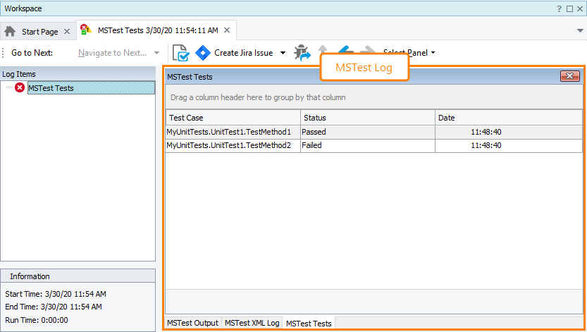 • MSTest Tests - Shows information about executed tests in a tabular form.