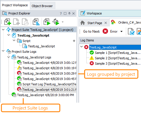 In addition, you can create custom subfolders in the Project Suite Logs folder to group test logs according to your needs (see Organizing Items Into Folders).
