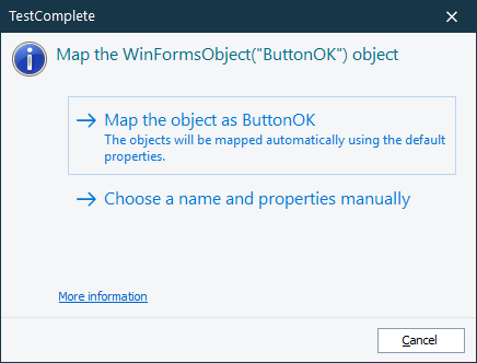 If there are several name mapping templates that match this object, TestComplete prompts you to select the template to use.