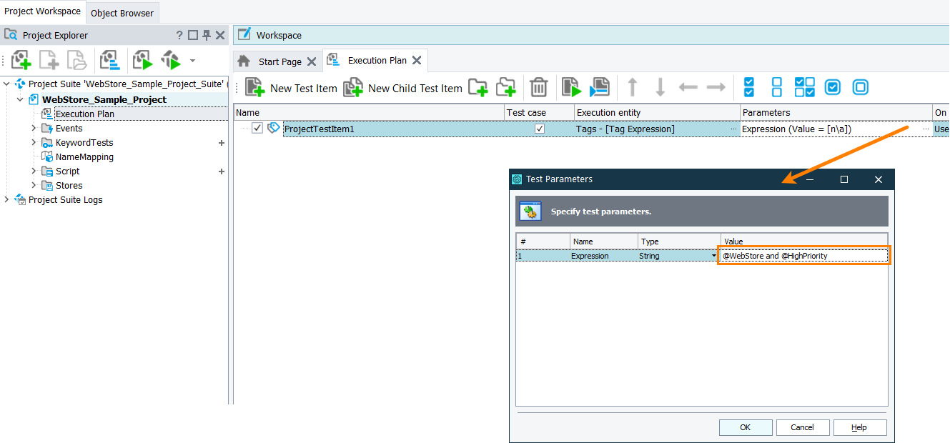 If the project suite does not contain projects or if all of the projects are excluded from the suite run, the test engine is unable to run the project suite and shows the The project suite cannot be run because there are no selected projects to be run message.