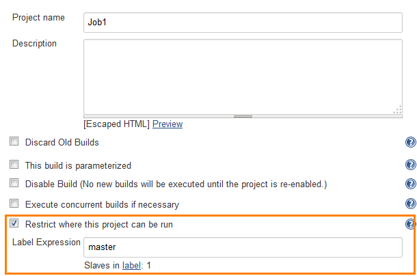 The node where you will run tests must have TestComplete or TestExecute installed. To make sure the job will run only on this node, select the Restrict where this project can be run check box and enter the name of the node, where you will run TestComplete tests.