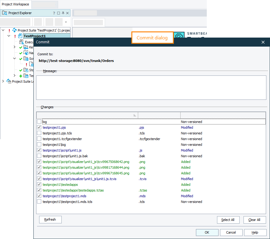 TestComplete implements a number of dialogs and commands that simplify your work with Subversion. For example: